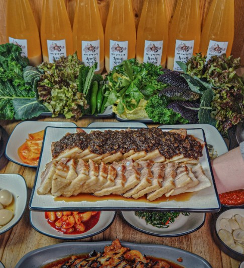 흑마늘을 듬뿍 넣어 만든 수육, 제육쌈밥맛집