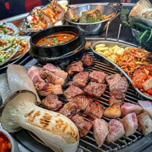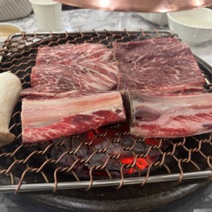 고기 본연의 풍미를 극대화하기 위해 라오스산 최고급 비장탄만을 고집하는 장인 정신과 함께 뼈째 구워 육즙이 팡팡 터지는 압도적인 풍미를 지닌 뼈삼겹을 맛보실 수 있습니다.