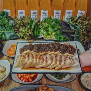 흑마늘을 듬뿍 넣어 만든 수육, 제육쌈밥맛집